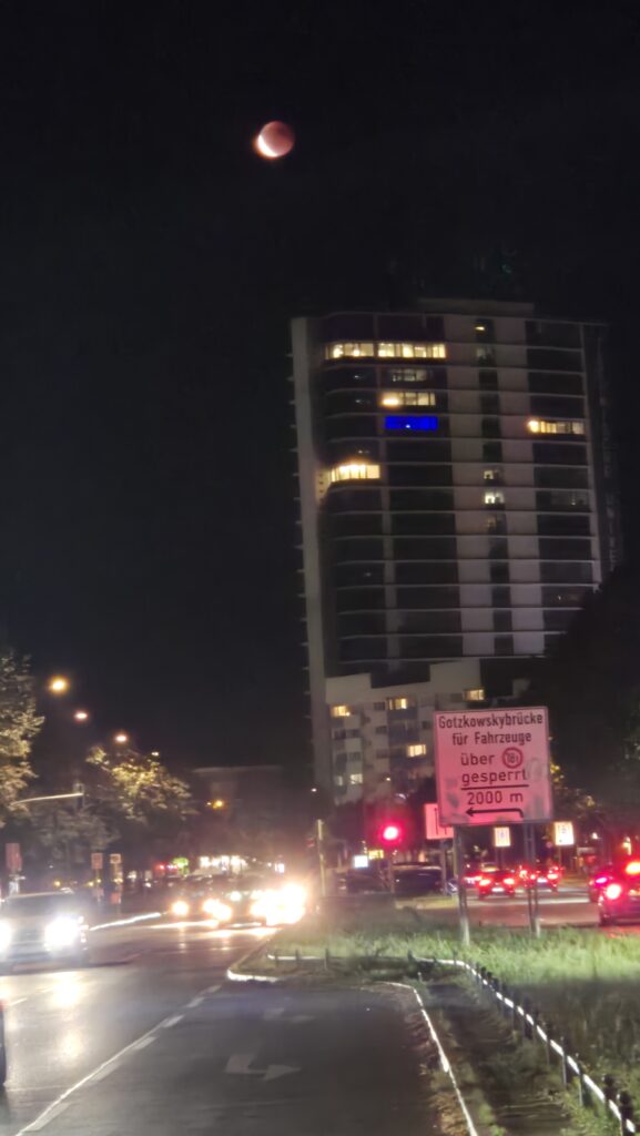 On September 7, it was that time again: a total lunar eclipse over Germany, and best of all, no clouds in the sky, at least in Berlin. Here are some impressions of the moon, which was already in the Earth’s shadow when it rose.